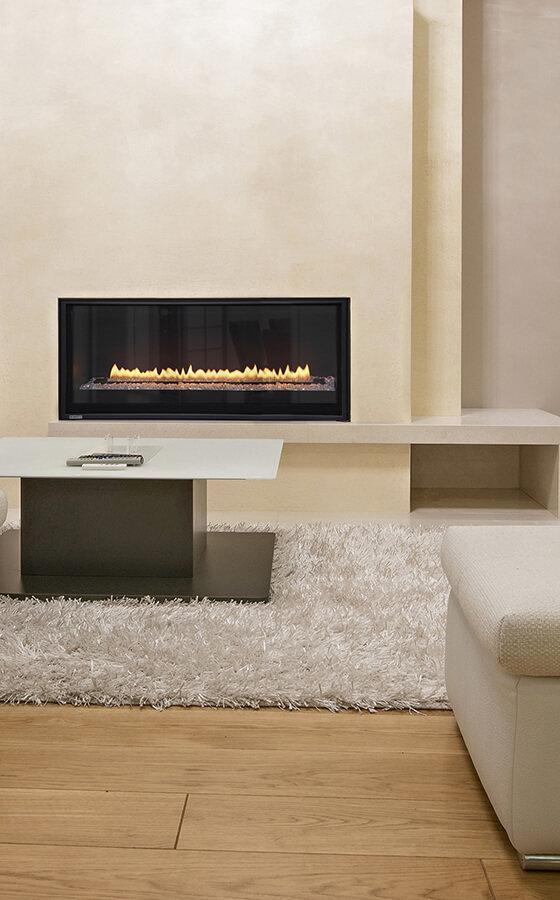The L-Series – the standard of excellence in linear fireplace design. The L52DF is a single side direct vent fireplace characterized by a landscape viewing area and linear flame. Rock or tile can be installed over the firebox frame for a clean minimalist look.